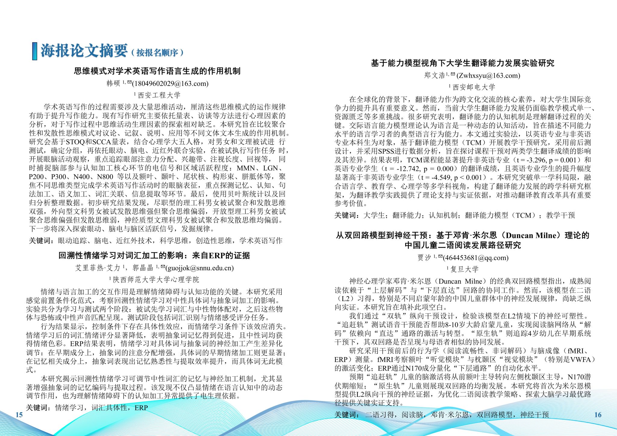 “二语习得与脑” 研讨会会议手册【四号通知】