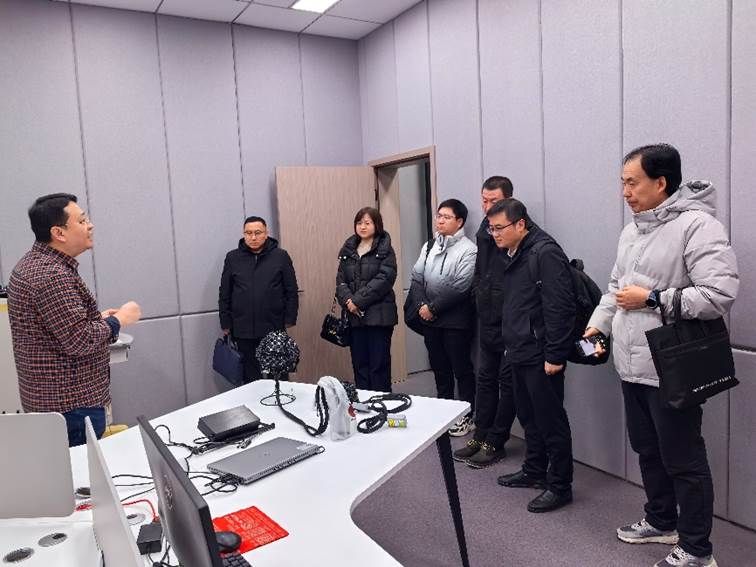 会上,燕浩教授代表智语实验室对张传庆处长一行的到访表示热烈欢迎。张传庆处长首先介绍了来访团队成员及此次调研目的。燕浩教授围绕智语实验室的建设规划、发展特色、运行模式、师资梯队、核心仪器设备、重点研究方向及代表性科研成果等进行了全面汇报。张传庆处长对智语实验室秉持的研究技术创新和科研成果转化并重的发展思路给予高度认可。随后,西藏民族大学医学院院长石镜明教授详细介绍了该校相关研究团队的基本情况与研究特色。医学院副院长信文君教授、网络安全学院董建民副教授、体育学院陈婷副教授、医学院姜钊副教授等分别结合各自科研团队和研究平台情况做了介绍。双方围绕“高原脱习服的认知评估及有效干预手段”“面向藏族青少年的学习增强系统开发与验证”等核心议题展开深度座谈,充分交换观点、凝聚合作共识。座谈结束后,燕浩教授带领来访人员实地考察了实验室各功能平台及核心实验设备,结合具体应用场景,详细阐释了各平台的科研设计理念、技术支撑体系及实践应用思路,让调研团队直观了解实验室的创新思路与运行实效。